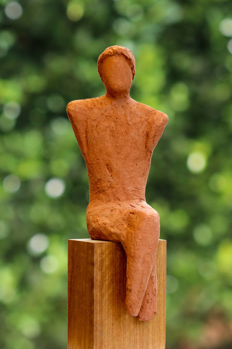 Hij boetseert bij voorkeur torso’s in verschillende afmetingen, in meer of mindere mate geabstraheerd.