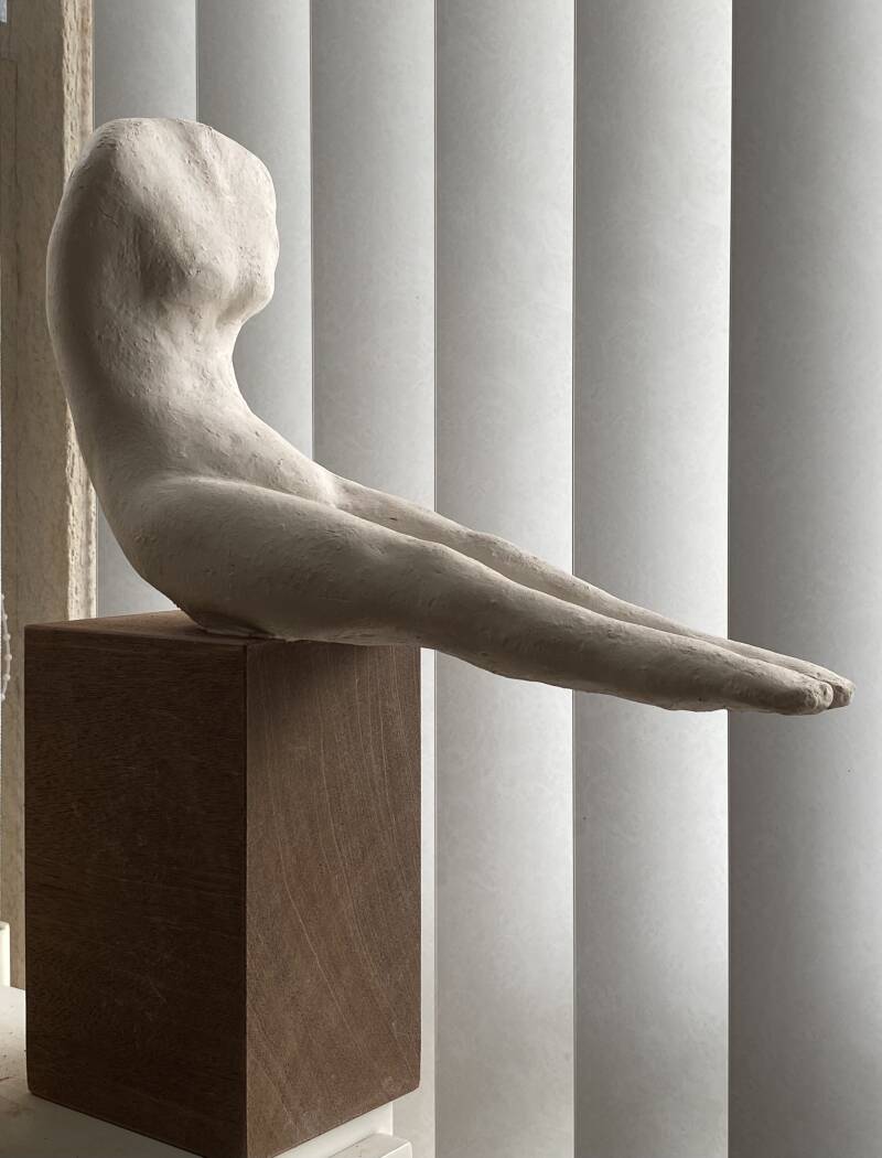Henk wordt geïnspireerd door de natuurlijke vormen van het menselijk lichaam. Een model vormt daarbij meestal de basis voor een meer of minder vrije “vertaling” in een beeld.