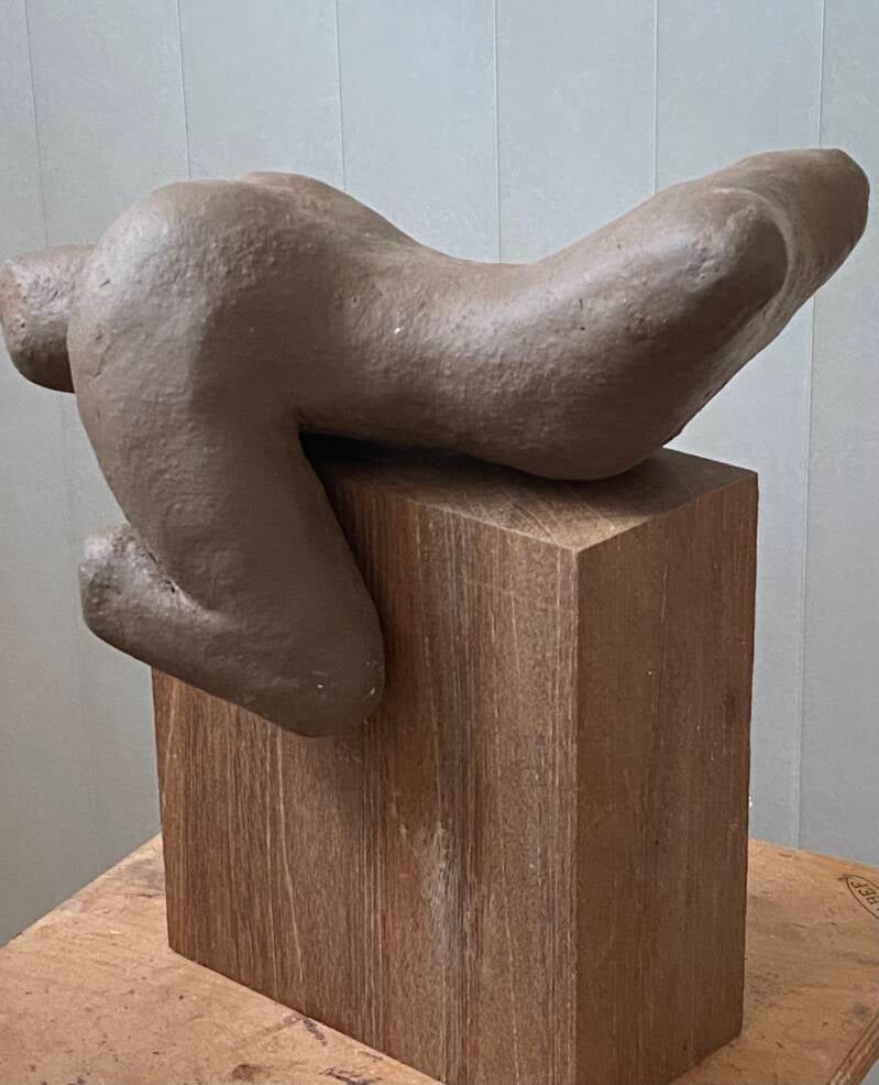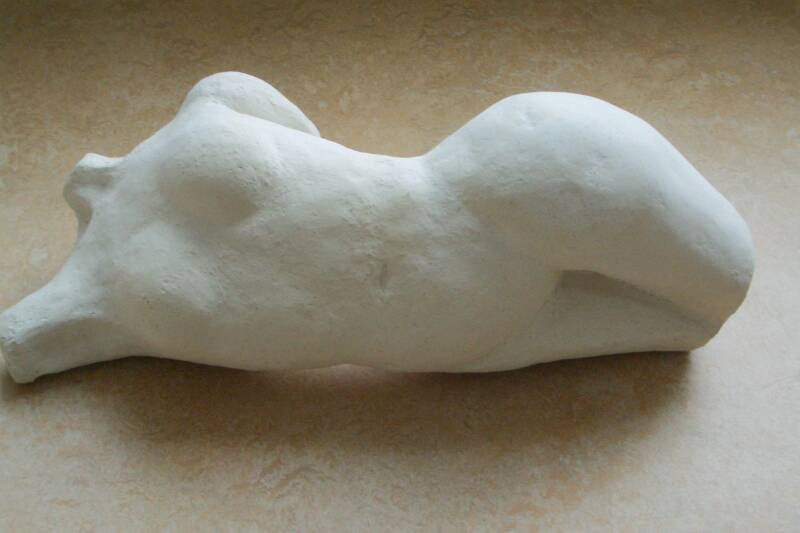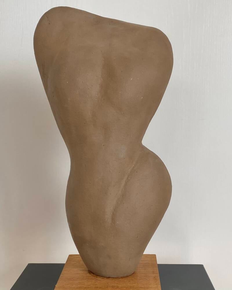 Hij boetseert bij voorkeur torso’s in verschillende afmetingen, in meer of mindere mate geabstraheerd.